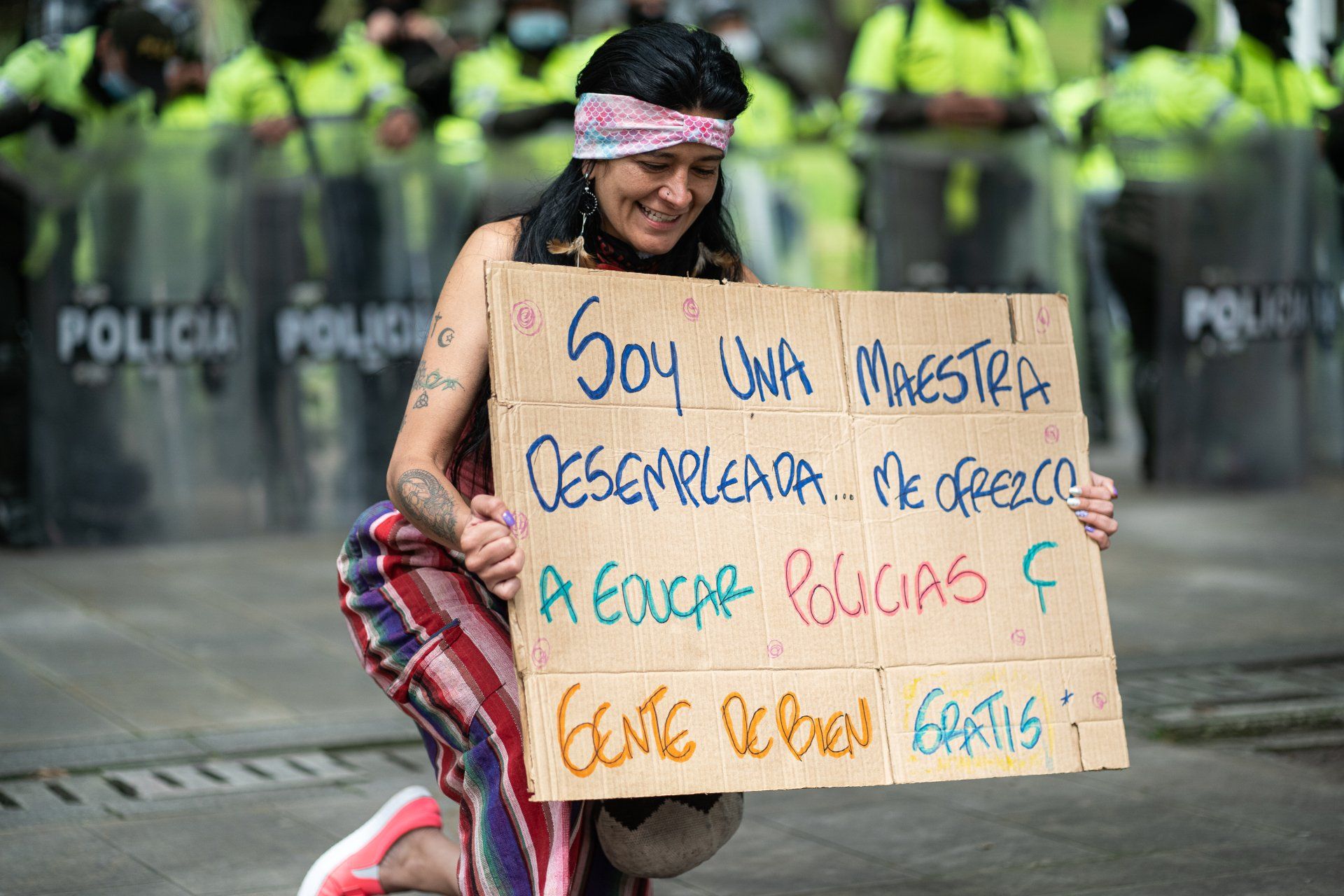Las personas no son iguales, las personas no son todas iguales. Y eso es exactamente lo que hace que el mundo sea hermoso. Las diferencias en las apariencias, las diferencias en los talentos, en las formas de vivir, en las opiniones, eso es lo que da color a nuestro mundo. Esas diferencias solo se convierten en un problema cuando no se permiten o aceptan ciertas formas de vida, cuando las personas son discriminadas por su apariencia y cuando ciertas opiniones y voces son ignoradas, prohibidas o menos valoradas que otras. El mundo podría ser un lugar increíblemente hermoso cuando aceptamos nuestra diversidad, nuestras diferencias. Este reportaje fotográfico representa exactamente eso. En la primavera de 2021, miles de colombianos tomaron las calles en defensa de sus derechos humanos. Personas de todo tipo de orígenes se tomaron de la mano y nos mostraron cómo podría ser el mundo. Mujeres y hombres, niños y ancianos, negros y blancos, indígenas colombianos y europeos, cis y trans, gays y heterosexuales, raperos y pole dance, todos protestaron juntos en la lucha por un mundo más igualitario y justo para todos.
