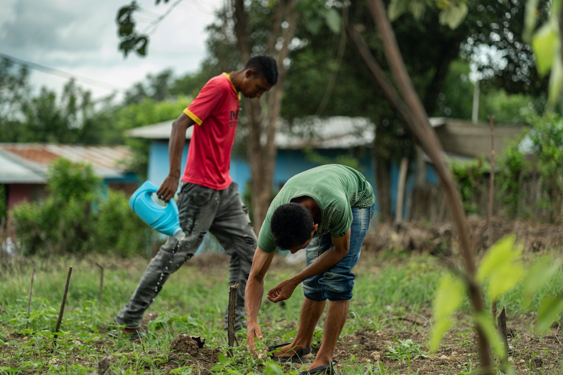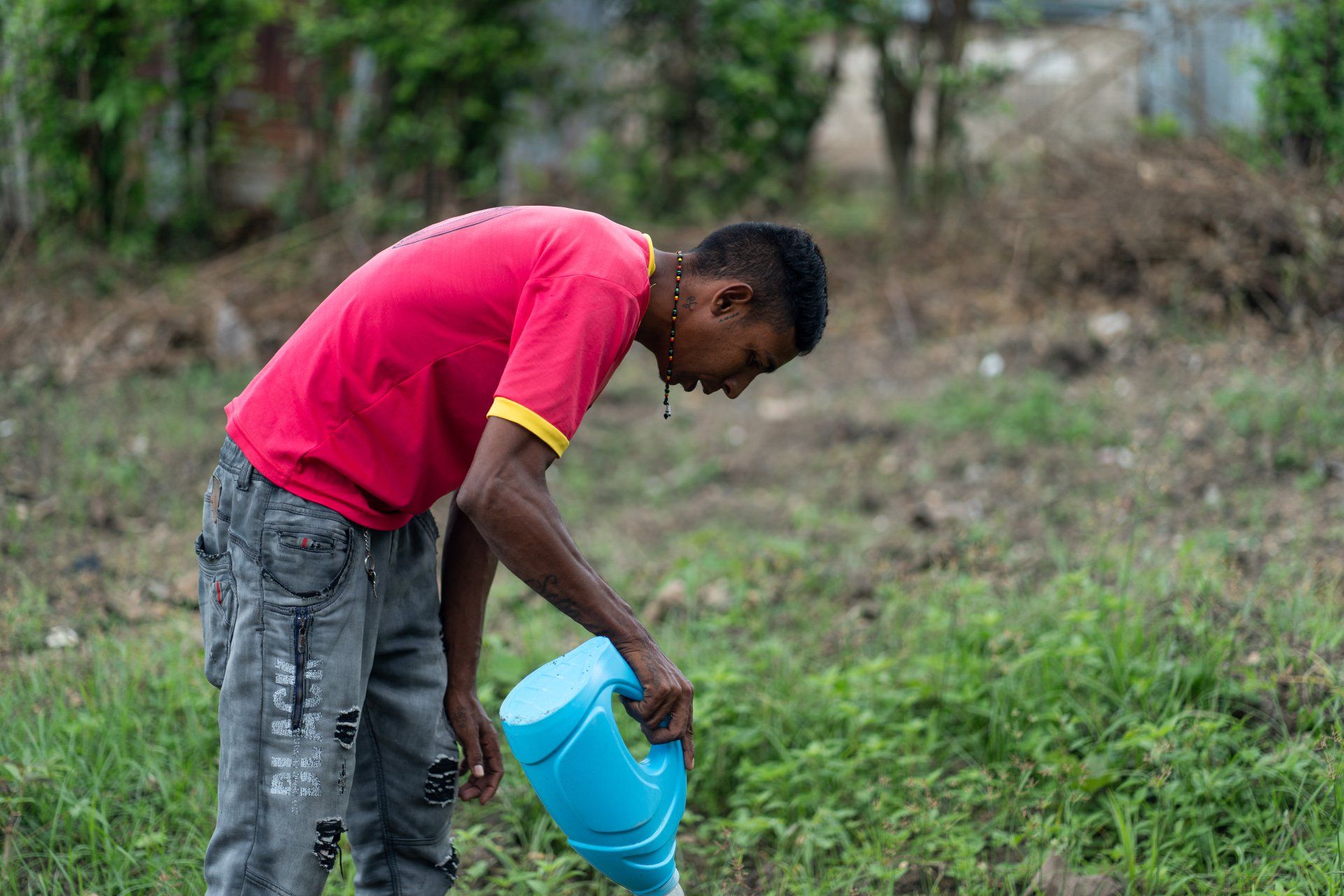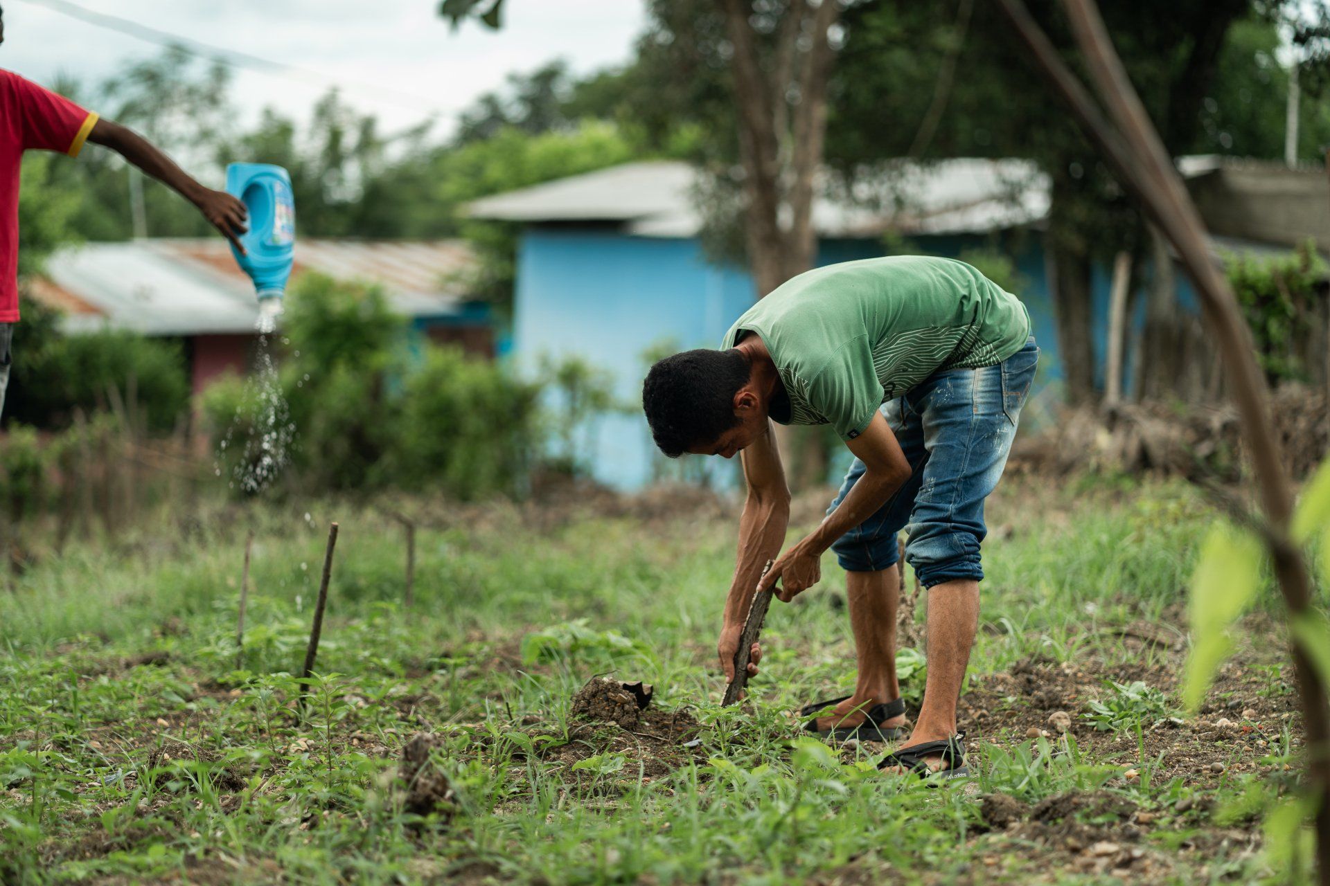 A community torn up by violence, elderly left alone, and the empty future of the youth filled with drugs to ease the pain, the community of Villa de Corral in Sincé has opened a community farm to learn how to be a community again. Young consumers come here to be able to get their minds of drugs, and instead do something useful, while having people around them to talk to about their problems. But everybody is welcome here at the farm. Such as Don Carlos, an elderly citizen of Villa de Corral who comes to the farm everyday to help out. He says that when he's alone he feels heavy, sad and lonely, but here at the farm he gets to do what he has been doing his entire life. It gives him energy, a sense of community, and he's happy. This is not just a farm, it's a healing farm: the therapeutic orchard.