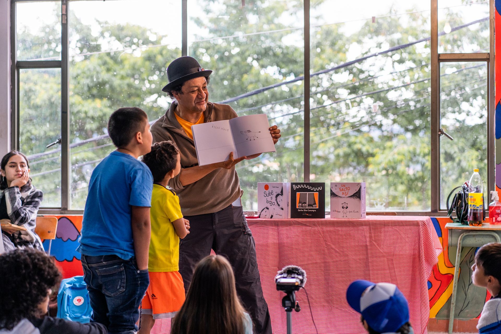 Picnic de Palabas invited us to Duitama and Paipa. Accompanied by author Carlos Riaño, they distributed 168 books to 42 children from the “Arriba Abajo” collection. In rural Colombia, many children do not have access to literature. Reading is an essential skill for children to thrive later in life: professionally, creatively, and socially. Lack of access to literature increases inequality. Led by Marcela Escovar, Picnic aims to close this gap and put books in the hands of children throughout Colombia.